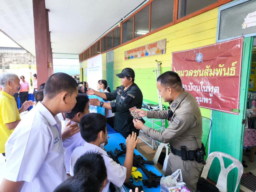 กิจกรรม open house แนะแนวอาชีพตำรวจ 22 กุมภาพันธ์ 2568 โดย admin / ข่าวภารกิจผู้บังคับบัญชา กิจกรรม open house แนะแนวอาชีพตำรวจ 20 กุมภาพันธ์ 2568 พ.ต.ท.จเร ชูแก้ว สวญ.สภ.บ้านในหูต มอบหมายให้ พ.ต.ท.ชัยวัฒน์ สายัณห์ สวป.สภ.บ้านในหูต พร้อมด้วยข้าราชการตำรวจสถานีตำรวจภูธรบ้านในหูต เข้าร่วมกิจกรรม open house เปิดบ้านวิชาการ หัวข้อ 1 โครงงาน 1 นวัตกรรม 1 ความเป็นไทย 1 ความปลอดภัย 1 งานแนะแนว ประจำปีการศึกษา 2567 ณ โรงเรียนบ้านหนองปลาตำบลนาขา อำเภอหลังสวน จังหวัดชุมพร เหตุด่วน เหตุร้าย โทร. 191 หรือสถานีตำรวจภูธรบ้านในหูต โทร. 077 595 135 กลับไปสู่บนสุด / Back to Top กลับไปสู่หน้าหลัก / Back to Home Facebook iconFacebookTwitter iconTwitterLINE iconLine