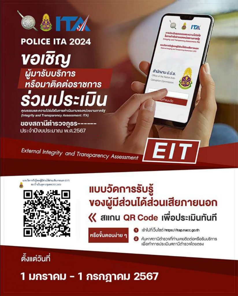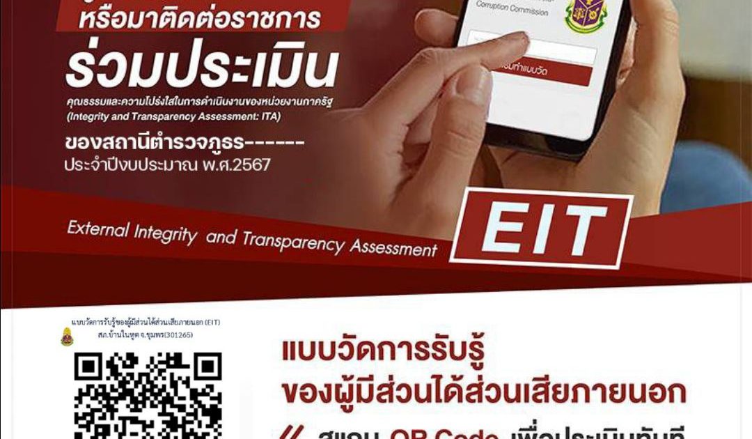 ขอเชิญร่วมทำแบบประเมินคุณธรรมและความโปร่งใสในการดำเนินงานของสถานีตำรวจภูธรบ้านในหูต ประจำปีงบประมาณ 2567