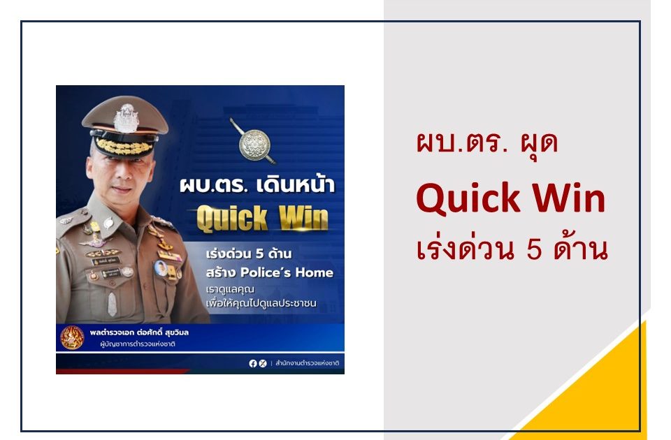 ผบ.ตร. ผุด Quick Win เร่งด่วน 5 ด้าน สร้าง Police’s Home : เราดูแลคุณ เพื่อให้คุณไปดูแลประชาชน