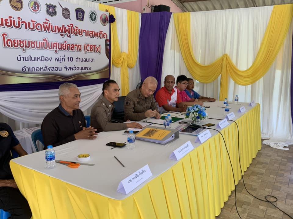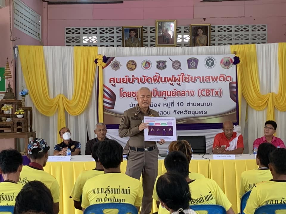 ผบก.ภ.จว.ชุมพร ได้ให้ความรู้ ถึงโทษและพิษภัยของการใช้สารเสพติดพร้อมคำแนะนำการแก้ปัญหายาเสพติดได้ทำแบบคัดกรองการใช้ยาเสพติดแบบที่ 2 เพื่อจำแนกกลุ่มผู้ใช้สารเสพติดและตรวจสุขภาพเบื้องต้นให้แก่ผู้เข้ารับการบำบัด