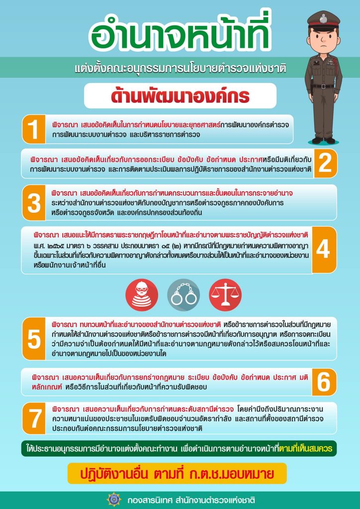 พ.ร.บ.ตำรวจแห่งชาติ พ.ศ.2565 เกี่ยวกับประกาศ ก.ต.ช. เรื่อง แต่งตั้งคณะอนุกรรมการนโยบายตำรวจแห่งชาติ จำนวน 4 ด้านคือ