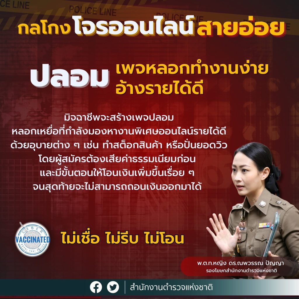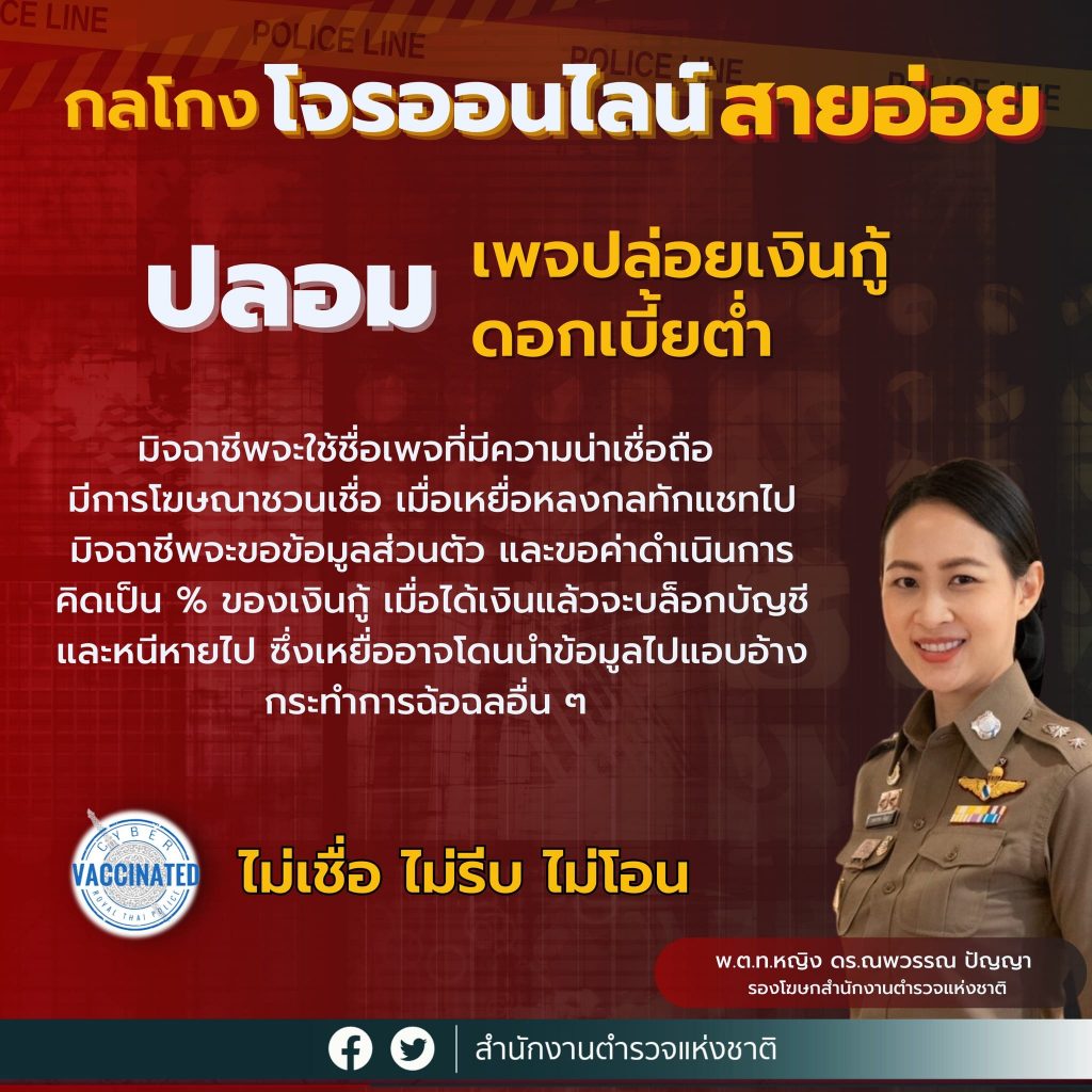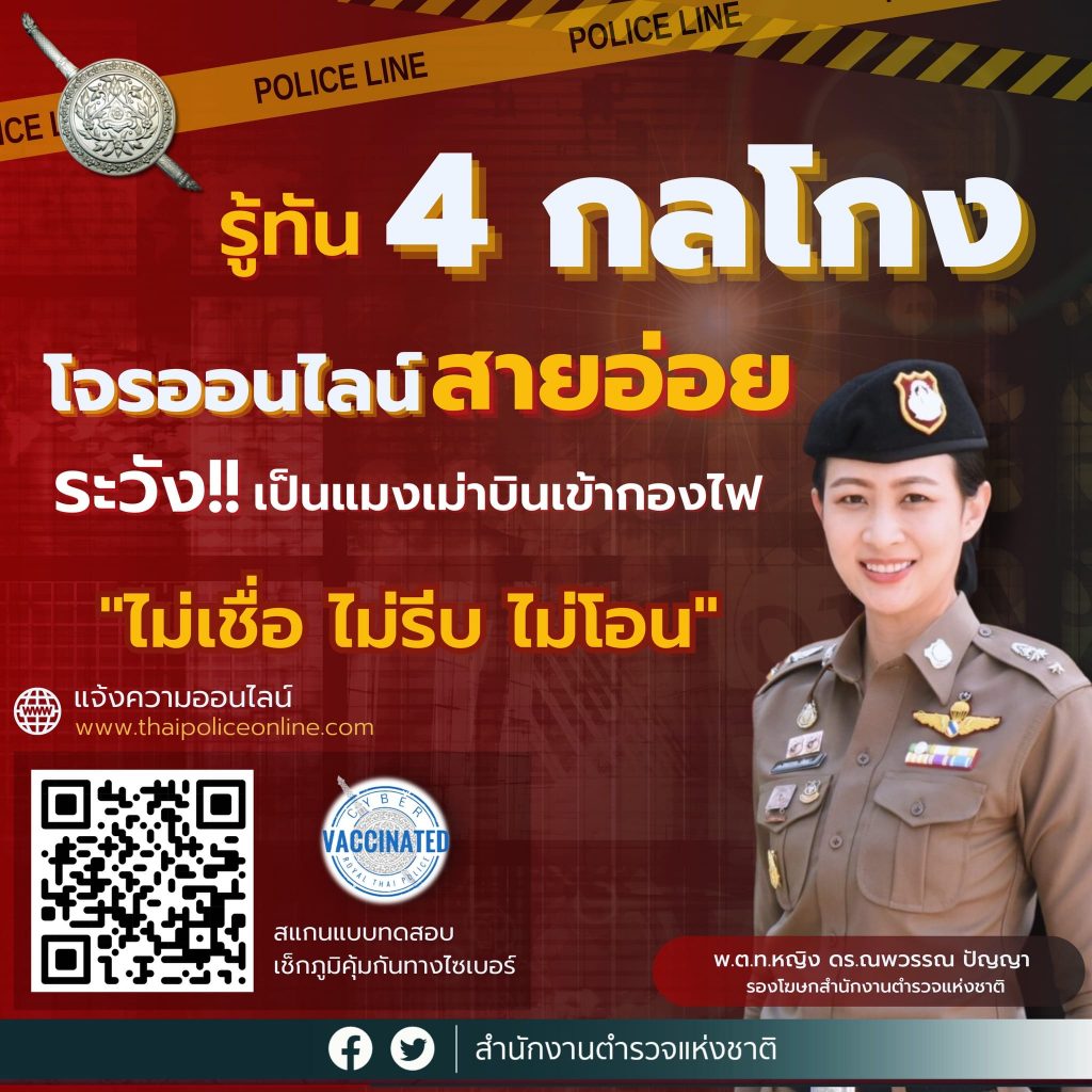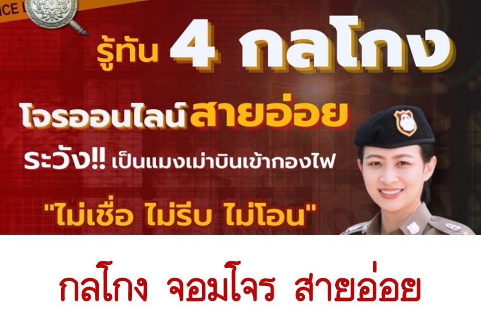 “ไม่เชื่อ ไม่รีบ ไม่โอน” 10 มิถุนายน 2565 โดย admin / 18 กลโกง ของมิจฉาชีพ ที่ใช้ในการหลอกเหยื่อ บนโลกออนไลน์ ติดต่อสอบถาม โทรศัพท์ 077 595 136 เรื่อง รู้ทัน 4 กลโกง”ไม่เชื่อ ไม่รีบ ไม่โอน” ด้วยความห่วงใยจากตำรวจภูธรบ้านในหูต ติดต่อสอบถาม โทรศัพท์ 077 595 135 กลับไปสู่บนสุด ( Back to Top ) กลับไปสู่หน้าหลัก ( Back to Home page ) Facebook iconFacebookTwitter iconTwitterLINE iconLine
