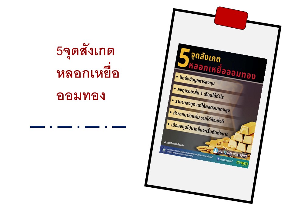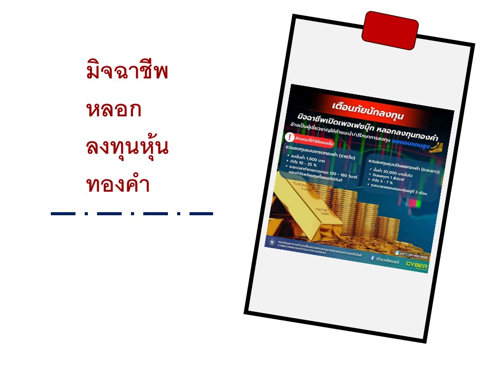 เพจเฟซบุ๊กแอบอ้างห้างทองชื่อดัง โพสต์ภาพผู้บริหาร โลโก้บริษัทสร้างความน่าเชื่อถือ โฆษณาเชิญชวนลงทุนซ