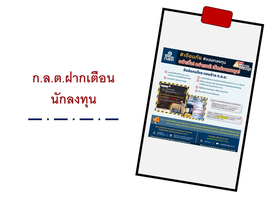 อย่าเชื่อ! อย่าแชร์! เช็กก่อนลงทุน!.ก.ล.ต. #เตือนภัยหลอกลงทุน ขอเชิญชวนทุกท่านตรวจสอบข้อมูลทุกครั้งก