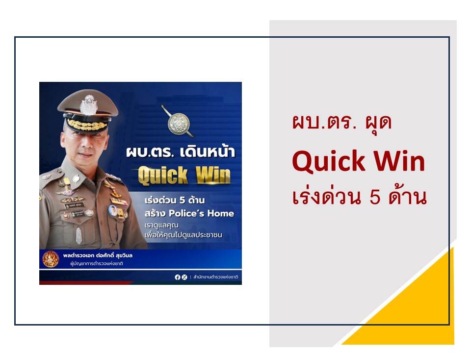 ผบ.ตร. ผุด Quick Win เร่งด่วน 5 ด้าน สร้าง Police’s Home : เราดูแลคุณ เพื่อให้คุณไปดูแลประชาชนพล.ต.อ